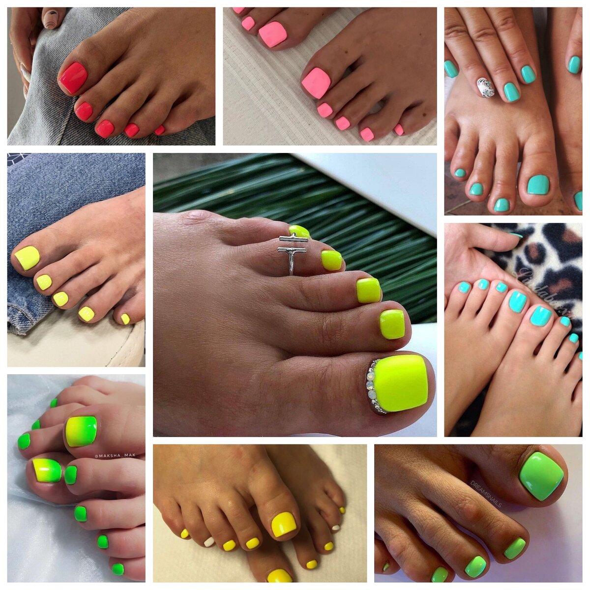 Не только ручки должны выглядеть красиво, но и наши ножки. Тем более летом, когда все одевают открытую обувь (босоножки, шлепанцы) или ходят босяком. В этой статье я подобрала для Вас топовые дизайны летнего педикюра, которые никого не оставят равнодушным. 1. Сочные цвета Лето - это время ярких красок и новых впечатлений. Конечно, этот тренд не обошёл и педикюр. Однотонный оранжевые, зелёные, мятные, фламинго. Выбирайте на свой вкус) 2. Пятнистый педикюр Необычный дизайн в виде пятен напоминает и животных, и ягоды, и фрукты. Сочный и привлекательный педикюр обязательно обратит на себя внимание всех окружающих. 3. Белый педикюр Белый сочетается с любым цветом, и особенно он красив на загорелом теле. Он олицетворяет невинность, чистоту, свежесть и новизну. С белым цветом ногтей Ваш образ будет безупречным. 4. Геометрия Уже несколько сезонов геометрические линии и фигуры держатся на пъедистале топовых неил-дизайнов. Такой педикюр универсальный: он подойдёт и для работы, и для веч