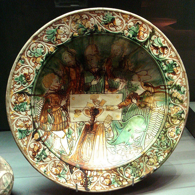 На этой итальянской тарелке середины XVвека изображена игра в карты.