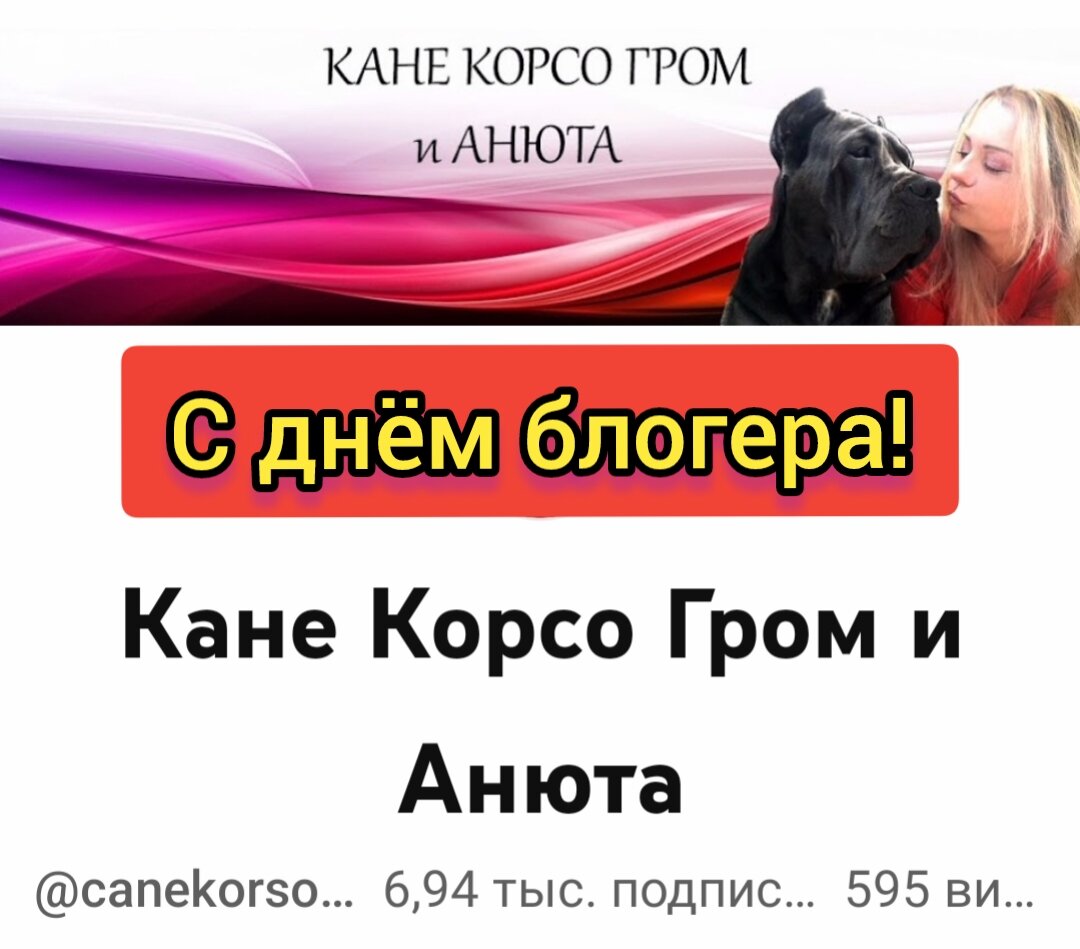 А какой сегодня день ? День блондинок... Выдал мне т9🤣. Но нет сегодня мой день, день блогера! Признаюсь честно, я и не думала о блогерстве! Я инвалид (опухоль мозга), сижу дома на хозяйстве. Мы купили собаку, дабы мне не так скучно жилось))) Я влюбилась до беспамятства и хотелось мне поделиться этой любовью со всем миром! Найти таких же любителей кане корсо. У меня был уже снят небольшой ролик, как Громик осваивался в первый день. Не долго думая, благо никаких особых манипуляций не потребовалось, я выложила в интернет. Я не знала НИЧЕГО! Не было ни названия ни идей, да честно я вовсе об забыла об этом. Спустя пару месяцев, я случайно увидела, что ЭТО кто-то смотрит! Во блин, подумала я, это кому-то интересно? Не дурачки ли?))) Но этот локомотив было не остановить уже! Естественно первые полгода о каком то качестве и говорить не стоит, я понятия не имела, что такое монтаж, видео снимала только вертикально.. И очень гордилась собой 🤣. Пока знающие люди не подсказали, что видео мои ник