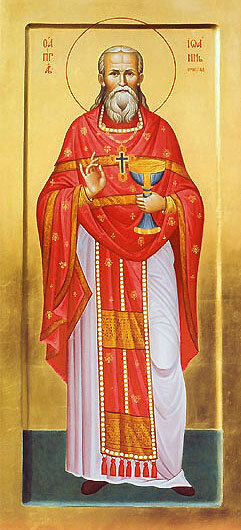Благода́тных даро́в Ду́ха Свята́го испо́лни тя Госпо́дь, о́тче наш Иоа́нне, и́миже ре́вностно послужи́л еси́ наро́ду Бо́жию. Вознеси́ моли́тву к Бо́гу и о нас, да ве́ры, наде́жды и любве́ дости́гше, прича́стницы жи́зни во Христе́ бу́дем и сподо́бимся воспева́ти благода́рственную песнь: Аллилу́ия.