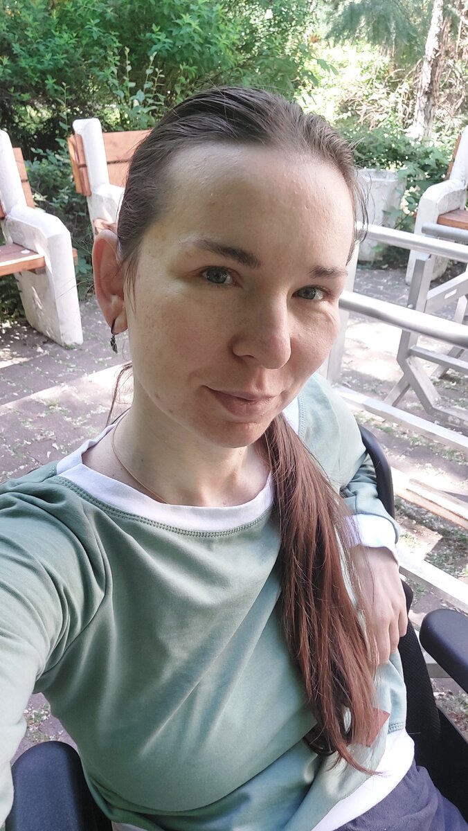 - А сколько тебе лет? - 36. - Ого! А я думала 19. Ну, это Лена, конечно, переборщила с комплиментом. Я и за 29 вполне была бы благодарна. Соседку по палате зовут так же как меня. Тезки. Лена немного младше и тоже в инвалидной коляске. Она худенькая. С выразительными карими глазами, чёрными бровями и волосами. Жгучая брюнетка. Лена - инвалид с детства. ДЦП. Кто не знает это детский церебральный паралич. Серьёзное заболевание. Или травма. Доктора ещё сами не определились. Люди с ДЦП бывают разные. Очень. От полной беспомощности, до вполне себе активной жизни, замужества, детей и т.д. Лена - средний вариант. Она не может себя обслуживать и не пересаживается в коляску. Лена с трудом разговаривает, но я понимаю. Несмотря на физические ограничения, у неё прекрасный интеллект. Она хорошо мыслит и неплохо излагает свои мысли (как может). Она любит читать и очень общительная. - Я бываю назойливая. Если надоем, ты скажи. Разъезжая по реабилитациям, я часто встречаю людей с ДЦП. Они