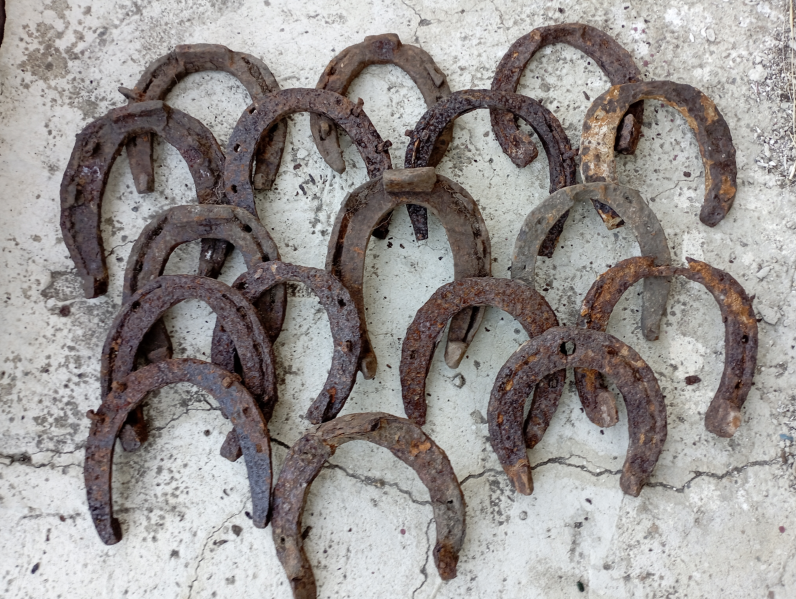 А куда можно приспособить старинные подковы? Они часто встречаются в земле, так как сама по себе подкова это такая вещь, которая легко могла потеряться. Естественно, что даже при наличии коня вряд ли можно использовать эти подковы повторно. А наши железные кони сегодня не нуждаются в подковах. И опять можно только предполагать. По факту, это обычный металлолом, который сегодня принимают по 20 рублей за кг. Но как-то жалко сдавать подковы в металл, так как с ними связано очень много поверий и суеверий. Самое распространенное - "найденную подкову рекомендуется повесить над входом в жилище". А вот интересно, подкова будет обладать "магической силой", если над жилищем ее повесит не тот, кто нашел, а тот, кто купил? Здесь нужно звать британских ученых, чтобы они провели эксперимент. Но барахолка Авито нам показывает, что подковы, как на фото, вполне себе выставляются на продажу. Во-первых, подкова является условно "старинной". Поди еще определи начало это 20-го века или 19-й век. Или