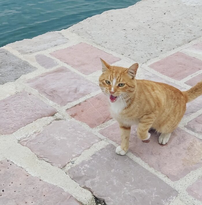Если что, это не бунт, кот почти мой, тег моё. Явился он из неоткуда (нет))) В общем, рыбачили на новом пирсе первый день, прощупывали корявыми снастями дно и штотут ловится, и услышали МЯУ! Оглянувшись, никаких котов не обнаружили, продолжили заниматься всякой рыболовной фигнёй, пока не услышали снова МЯОО!) И обнаружили уже под ногами вот этого красавца. Это было первое знакомство. Он нагл и скромен одновременно. Он дремет чуть в отдалении, не нарушая наш покой. Но как начинается поклёвка, он уже в боевой стойке готов принять улов))) Пару раз чуть не поймался на крючок, дурень. И один раз мы с ним бились за дораду, которая случайно упала на пирс))) Рыжий всегда знает во сколько приходят домой рыбаки на лодках, ибо там все потроха его)) (Сидит орет) А ещё он мемасик) А местных бычков мы называем теперь кошачьим кормом, ибо всё идёт нашему Рыжему;) А ещё он был открыткой на первое марта. И мы теперь знаем, что Рыжий о своем появлении заявляет за квартал и нужно перекидывать спиннинги н