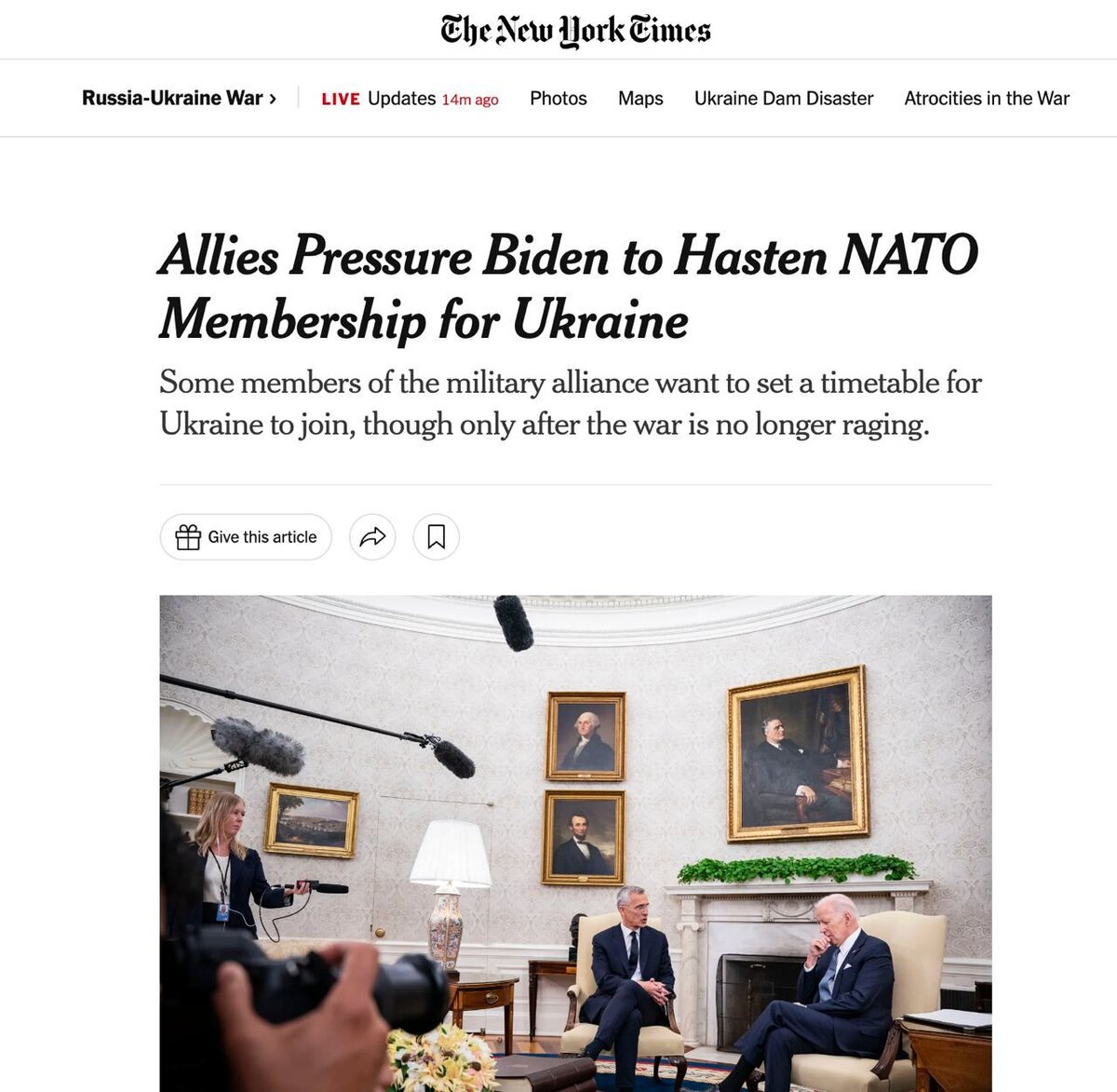 Американское издание The New York Times со ссылкой на помощников президента США Джо Байдена 14 июня сообщило, что Вашингтон предлагает Киеву "израильскую модель" гарантий безопасности вместо официального присоединения к НАТО. Данная модель подразумевает долгосрочные - десятилетние - обязательства США по обеспечению безопасности Украины, включающие в том числе и военную поддержку. В статье уточняется, что помощники Байдена уже обсуждают эту идею с членами Конгресса. "По словам представителей администрации, идея состоит в том, чтобы убедить [Владимира] Путина, что поток оружия и обучения в Киев не прекратится, а также исключить политику из эпизодических дебатов о том, сколько помощи оказать Украине в ближайшие шесть месяцев или год", - пишет издание. Также в публикации The New York Times говорится, что Байден обсуждал вопрос включения Украины в НАТО с генсеком альянса Йенсом Столтенбергом, и последний якобы предложил упрощенную процедуру принятия "пристрелянного" в боевых действиях Киева