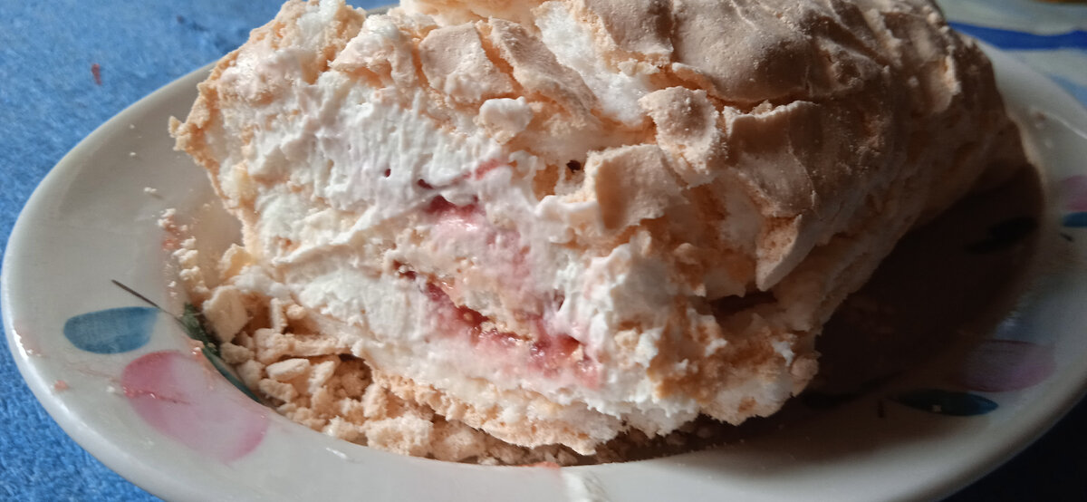 Меренговый рулет - это крутая штука, а самое главное - все просто, как дважды два. Это говорит вам человек, который любит вкусно покушать, но терпеть не может долго стоять у плиты. Жизнь слишком короткая, чтобы проводить ее стоя на кухне😉 Итак, меньше слов, больше дела! После того, как я сделаю очередную партию домашнего пломбира из сливок, у меня остаются неиспользованные яичные белки. И если раньше я просто пекла безе или делала заварной белковый крем для корзиночек, то теперь я пеку меренговые рулеты с кремом из взбитых сливок. Для меренги вам понадобится: Как сделать меренгу Затем… я пеку второй рулет точно так же))) Белковой массы у меня хвататет на 2 рулета, т.к. моя духовка очень компактная. Крем из домашних сливок За это время делаем крем. Я просто взбиваю жидкие охлажденные сливки из козьего молока с сахарной пудрой. Расчет простой - на 10 мл сливок - 1 г сахарной пудры. То есть на 400 г сливок я беру 40 сахарной пудры. Пудру надо добавлять на этапе начала загустевания сливок