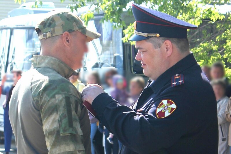 Спецназовцы удостоены медалей «За отличие в охране общественного порядка» В Кургане временно исполняющий обязанности начальника территориального управления Росгвардии подполковник полиции Евгений Реутов вручил государственные награды двум сотрудникам СОБР «Мангуст», отличившимся в ходе специальной военной операции по защите мирных жителей Донецкой и Луганской народных республик, Херсонской и Запорожской областей. Указом Президента Российской Федерации за мужество, отвагу и самоотверженность, проявленные при выполнении служебно-боевых задач, спецназовцы удостоены медалей «За отличие в охране общественного порядка». Евгений Реутов поздравил сотрудников спецподразделения с высокими наградами и поблагодарил за добросовестную службу и профессионализм, отметили в ведомстве. Фото пресс-службы Управления Росгвардии по Курганской области