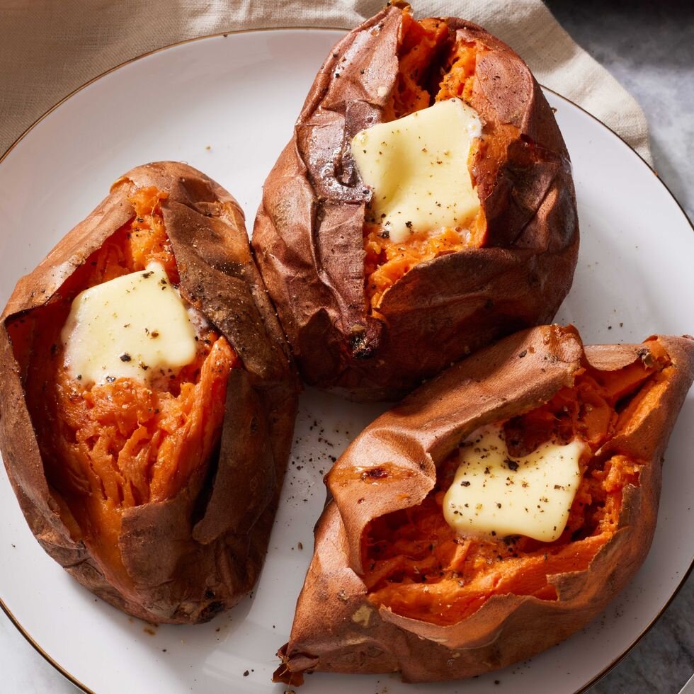 Мы любим сладкий картофель круглый год, но когда наступает осень, наступает самое время для него. Это суперфуд (насыщенный витамином С и растительной клетчаткой), он вкусен в сладком или соленом виде и может добавить цвета и разнообразия в ваше блюдо. Их можно запекать, делать из них пюре, жарить на гриле... возможности безграничны. Один из наших любимых способов их приготовления - запечь их целиком в духовке. Это, пожалуй, самый простой способ (его может превзойти только микроволновая печь) и самый универсальный (см. ниже несколько идей рецептов). Ознакомьтесь с нашими простыми инструкциями, чтобы каждый раз запекать их идеально. Вымойте их дочиста и высушите Худший способ испортить запеканку из сладкого картофеля - это зернистая текстура. Слегка очистите кожуру, чтобы избавиться от грязи и земли. Если вы планируете есть кожицу, перед запеканием натрите ее небольшим количеством оливкового масла, чтобы она стала хрустящей и приобрела дополнительный вкус. Зав