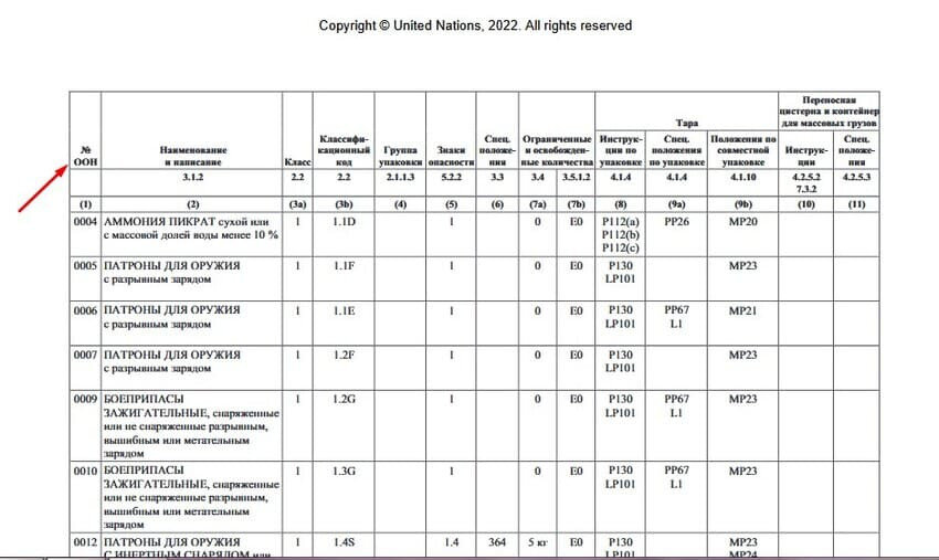 4) сведения об опасном грузе: 4-значный идентификационный номер вещества или изделия (так называемый номер ООН), надлежащее отгрузочное наименование, класс (для веществ и изделий класса 1 - классификационный код), группа упаковки. Все эти сведения, кроме группы упаковки, приводят согласно Приложению A к ДОПОГ.