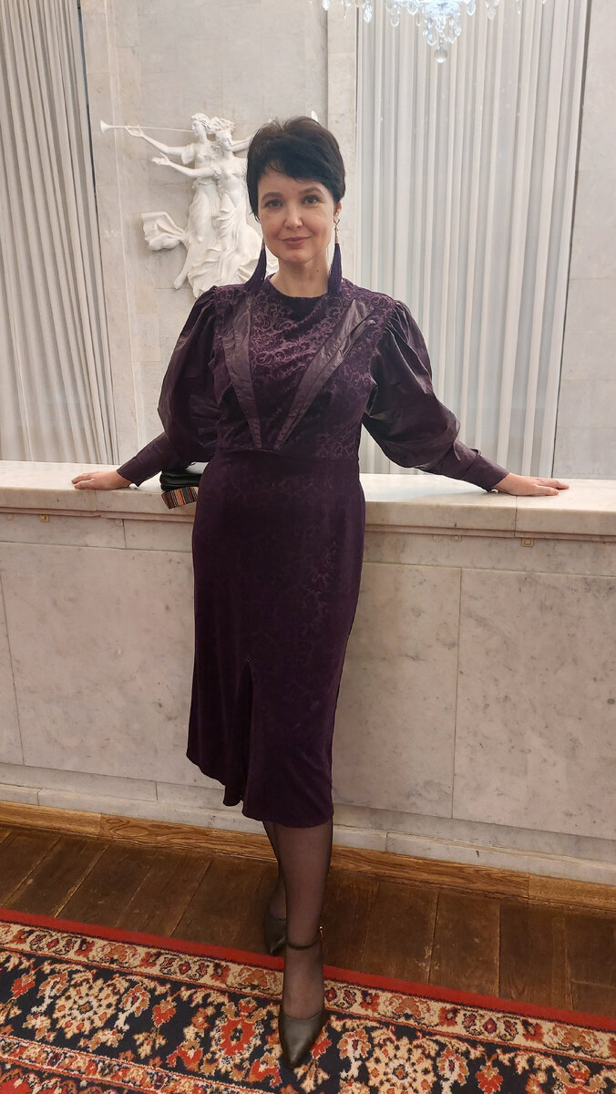 Ростовчанка Екатерина Волкова ходит в театр в винтажном платье 1990 года. Его сшила мама Любовь Волкова, в прошлом конструктор-модельер Дома моделей. Когда-то Любовь Волкова «обшивала ростовскую элиту». Желающих было слишком много, и потому мастерица выбирала, кого обслужить. Рассказ мамы - В 1987 году я была принята модельером-конструктором в экспериментальный цех Дома моделей. Работа была связана с индивидуальным пошивом для манекенщиц и заказчиков. Можно было фантазировать. Ткани выдавались со склада, прикладные материалы тоже. Подплечники шили мастера, их еще в продаже не было. Я делала эскизы и выкройки для каждого человека. Вещи очень хорошо смотрелись на фигурах. Нужна была только одна примерка, обходились и без нее. Я вырезала детали из бумаги, переносила на ткань и отдавала вместе с эскизом мастеру-швее. Фиолетовое платье было сделано примерно в 1990 году из японской, как нам сказали, ткани. Ее получил Дом моделей. Мне выдали восемь метров фиолетового и бирюзового цвета на