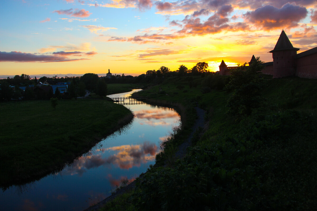 Суздаль многие годы является для меня тем город, куда мне хочется вернуться. Так как я бываю там часто, то у меня есть в этом городе любимые места. Сегодня хочу поделиться ими с вами. На первом месте у меня стоит смотровая площадка у Спасо-Ефимьева монастыря на высоком берегу реки Каменка. Закаты здесь просто волшебные. С этого места открывается прекрасный вид на Покровский женский монастырь, а также панорамный вид на нижний берег реки, на храмы и жилую застройку города. Недалеко от этого места есть ещё одна очень красивая смотровая, которая находится также на берегу Каменки, но уже у стен Александровского монастыря. Эта площадка не так популярна, как первая, а виды с неё открываются просто волшебные. Можно одновременно любоваться и на Покровский женский монастырь, и на Спасо-Ефимьев монастырь.