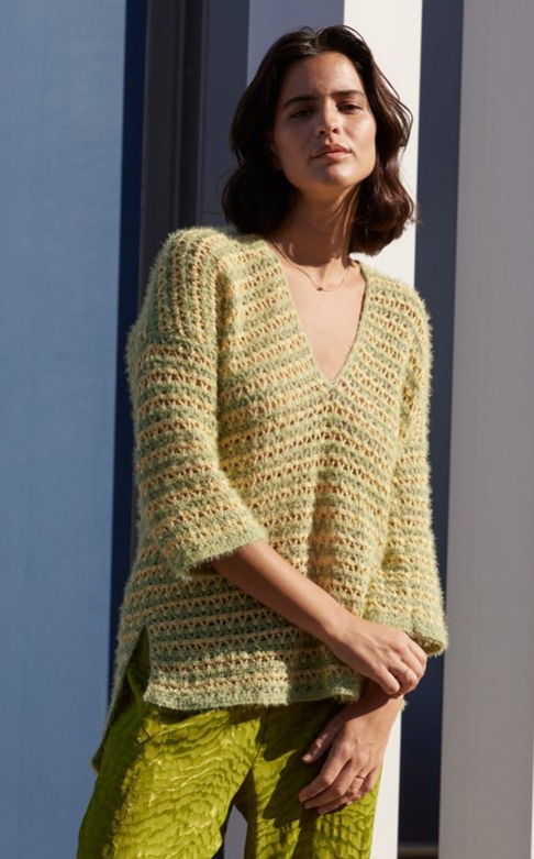 Четыре простых прямоугольника, связанных крючком и V-образный вырез- только впереди – идеальный свитер для начинающих.
