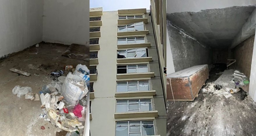 Жители высотного здания в Баку: Повсюду сырость, мусор и выбитые окна
