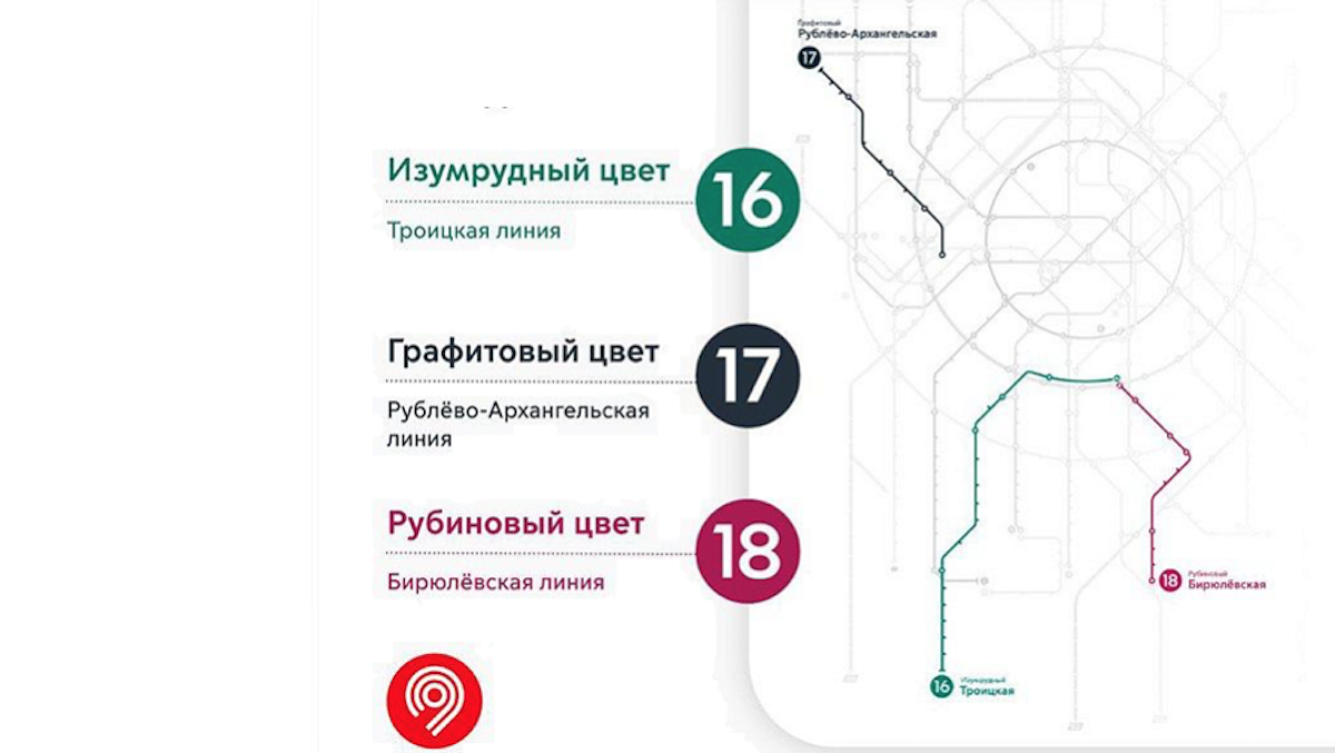 Названы цвета трёх новых линий московского метро Москвичи выбрали цвета для трёх будущих линий метро. Голосование по этому вопросу длилось с конца мая. Результаты уже известны. 40-километровая Троицкая, которую планируется запустить в 2024-2026 годах будет обозначаться изумрудным цветом, 19-километровая Рублёво-Архангельская линия, открытие которой намечено на 2027 год, станет графитовой, а 21-километровая Бирюлёвская линия, которую планируется ввести в эксплуатацию также в 2027 году, окрасится в рубиновый. Ещё больше новостей на сайте «Изнанка»