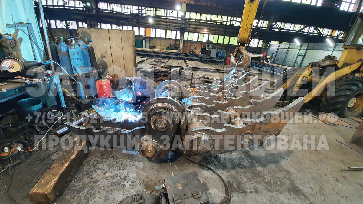 На этих фотографиях показан процесс сборки рыхлителя для корчевания. На первой их них хорошо видны фаски (разделка кромок), выполненные с двух сторон по контурам стыков зубьев со стрежнем основания. Данные технологические элементы снижают объём наплавленного (выступающего на поверхности) металла и повышают качество сварных соединений. Для предотвращения излишних деформаций при сборке изделия мы скрепляем детали специальными планками, которые вы также можете видеть на представленных фотографиях. Завершает процесс изготовления операция зачистки сварных швов, которая позволяет удалить шлак и снять внутренние напряжения. После её окончания мы проводим проверку присоединительных и габаритных размеров рыхлителя для корчевания и качества его сварных соединений. Друзья, подписывайтесь на наш ютюб-канал, здесь мы ведем видеоуроки по сборке и ремонту навесного оборудования! Производство валковых, барабанного типа ковшей, поворотных ковшей для экскаваторов, крашеров, корчевателей 11 типов: 8-