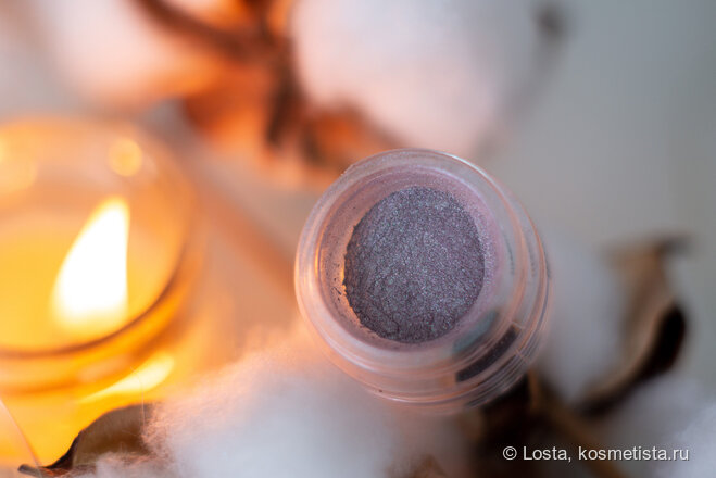 Tammy Tanuka Легкая как Перышко — весьма скромный по своему финишу пигмент, но при всем при этом очень красивый и носибельный оттенок. В баночке смотрится весьма скромно, даже я бы сказала неприметно. Открывая ее думаешь — что же я получу? А получаешь красоту, неожиданную. Формат выпуска Пигменты выпускаются в баночке с резьбой. Сбоку — наклейка с названием оттенка. У меня оттенок вроде бы из стака, поэтому не на донышке. Помол | Финиш Помол мелкий, нежнейший. Пигмент гладкий. Финиш сатиновый, с достаточно явным бликом. Оттенок Легкая как Перышко Совсем не понимаю бренд в описании оттенка. Предполагается, что этот оттенок скорее коричневатый с зеленцой, преломляющийся на розоватый на коричневой базе. Вот хоть убейте — не вижу я тут коричневого. Что на официальных свотчах, что на своих, что в макияже коричневого просто нет. Я четко вижу зеленовато-изумрудный блик и преломление в лилово-розовый. Просто на свотче блик поймать тяжело, но розовый побивается. Свотч я сделала просто на сухую