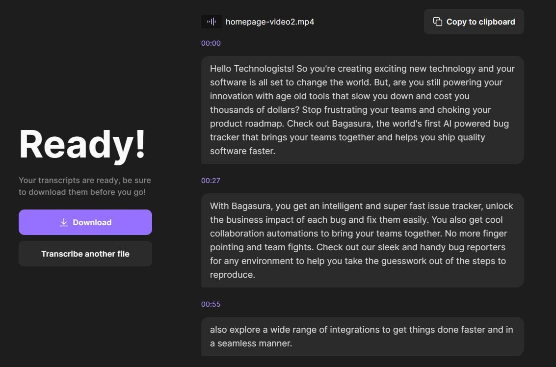 Нейросеть, созданная на основе технологии GPT-3.5 от компании OpenAI, позволяет автоматически преобразовывать любое видео или аудио в текст. Один из отличных инструментов для этого - Riverside FM, который поможет избежать просмотра скучной лекции или быстро создать субтитры для видеоролика. Удобство использования Riverside FM заключается в том, что он поддерживает все популярные форматы файлов и русский язык. Вы можете опробовать этот сервис, перейдя по ссылке.