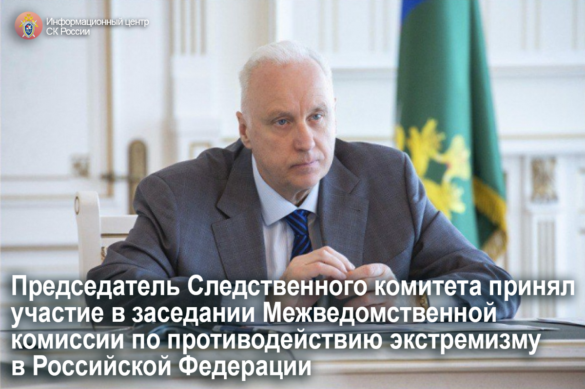 Глава Следственного комитета Российской Федерации Александр Иванович Бастрыкин в режиме видео-конференц-связи принял участие в очередном заседании Межведомственной комиссии по противодействию экстремизму, состоявшемся под председательством Министра внутренних дел России Владимира Александровича Колокольцева. В совещании приняли участие руководители профильных министерств и ведомств.
