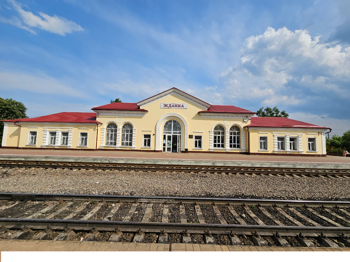 Жданка - железнодорожная станция Богородицка. Почему же тогда "Жданка"? Всё очень просто. Некоторое время название было, как и положено, - "Богородицк". Но потом в Подмосковье открылась станция Богородск (нынешний Ногинск) и образовалось две станции с очень похожими названиями - "Богородск" и "Богородицк". Возникла путаница, грузовые составы начали теряться, приходя не туда, куда нужно. Из-за такой парадоксальной ситуации железнодорожную станцию Богородицка было решено переименовать, по названию близлежащей деревни, в Жданку. Произошло это ещё в 1904 году. А существует сама станция с 1874 года. Первое здание вокзала было деревянным, через 40 лет на его месте построили каменное, которое при отступлении сожгли фашисты. Современное здание вокзала построено по типовому проекту в послевоенные годы. Первое, что привлекло мое внимание внутри вокзала - это герб города Богородицка на одной из стен. Он очень необычный: какой-то мирный и даже уютный (если мо