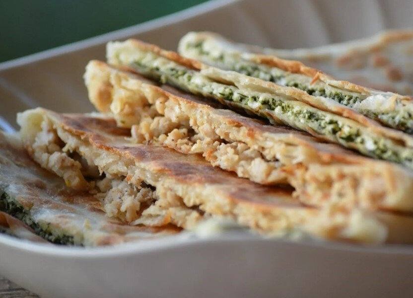 Без какой еды в Турции не обойтись? Без Гёзлиме, конечно же. А что это такое, спросят некоторые из читателей? Гезлеме – турецкая лепешка с начинкой, завернутая конвертом и тонко раскатанная. Кстати, Гёзлиме очень любил знаменитый Ходжа Насреддин. Несколько историй о нем напишу в конце статьи. Иногда Гёзлиме делают из двух лепешек, защипнутых вместе. В Турции готовят Гёзлиме из разных видов теста - дрожжевого, кефирного, слоеного, часто - из особого турецкого теста юфка Начинки для гезлеме можно варьировать, делать: овощными (шпинат, баклажаны), мясными сырными. А еще можно сделать сладкие гезлеме, начиненные коричневым сахаром. Мы выбрали варинт начинки с сыром и луком-пореем. Ингредиенты: 500 г муки высшего или первого сорта 150 г густого натурального йогурта 5 г сухих дрожжей 5 г соли оливковое масло Для начинки: 2 больших стебля лука-порея (белая часть + 5–7 см светло-зеленой) 120 г домашнего сыра или сыра халуми оливковое масло сушеная мята соль ПОШАГОВЫЙ РЕЦЕПТ ПРИГОТ