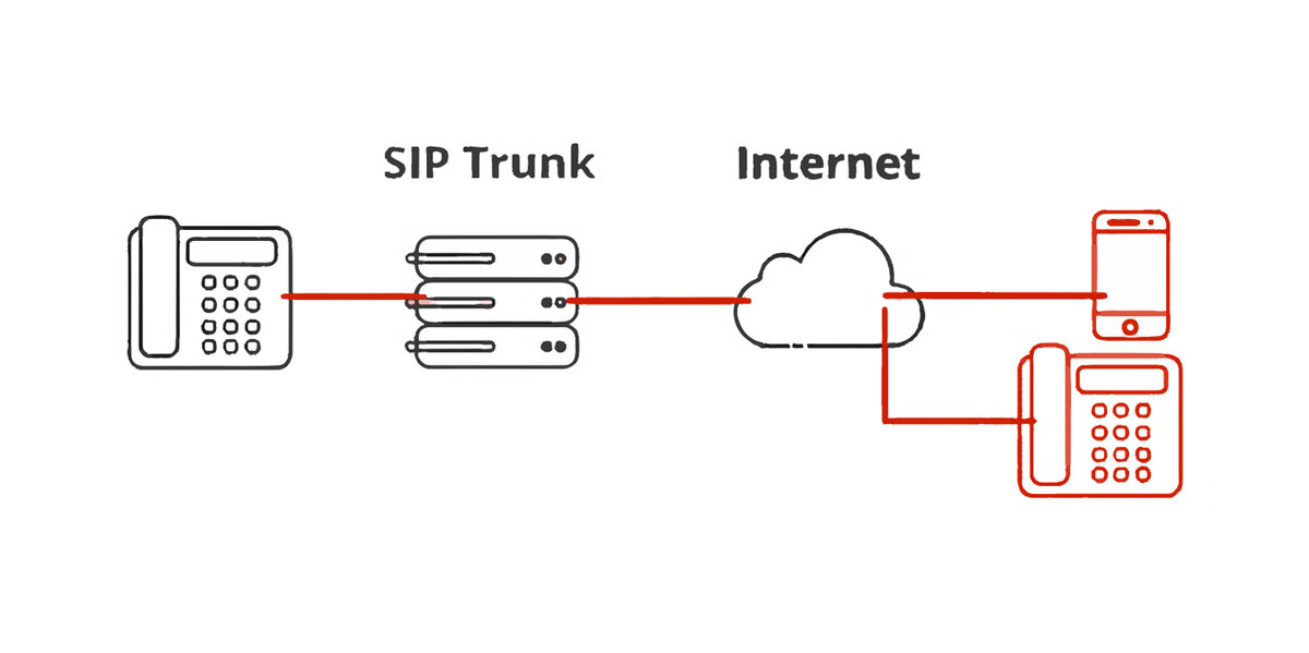 На одном “конце” сип-транка находится телефонное оборудование клиента, на другом — оборудование и программное обеспечение для коммуникации через интернет, которое предоставляет провайдер.