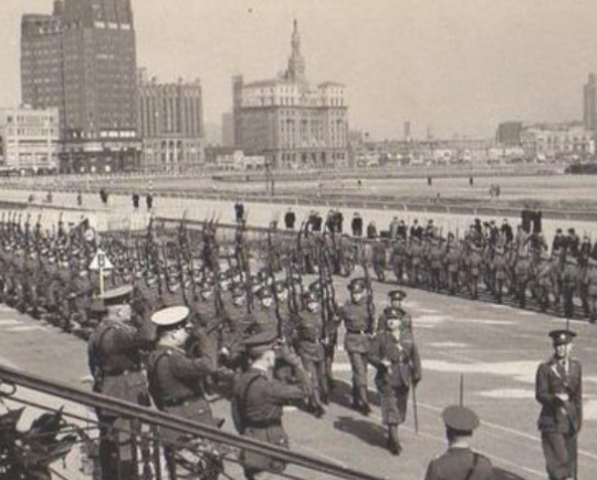 В 1927 году муниципалитет международного сеттельмента в Шанхае, обратился с просьбой к генерал-лейтенанту Ф. Глебову сформировать из русских эмигрантов (преимущественно казаков) регулярный отряд в составе волонтерского корпуса. Первоначально состоявший из двух рот, русский отряд в дальнейшем вырос до четырех рот и стал именоваться “Шанхайским русским полком”. Полк насчитывал в своих рядах 90 офицеров и 438 рядовых, обладавших боевым опытом участников Гражданской войны в России на стороне белых правительств.