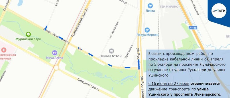Работы на сетях ограничат Ушинского и Ударников и закроют перекресток в Колпино Новые ограничения движения из-за работ на коммуникациях с 16 июня вступят в силу в трех районах Петербурга: Калининском, Красногвардейском и Колпинском. Об этом 14 июня предупреждает пресс-служба Государственной административно-технической инспекции. На улице Ушинского до 27 июля ограничат движение транспорта у проспекта Луначарского. Там продолжают прокладывать кабельную линию на участке проспекта Луначарского от улицы Руставели до улицы Ушинского. Работы продлятся до 5 октября. Напомним, что до 27 июля ограничено движение и по самому проспекту на указанном отрезке. До 2 июля ограничат проезд по проспекту Ударников у улицы Коммуны. Причина — реконструкция инженерных сетей на Коммуны и Ударников, которая стартовала 12 июня. Работы продлятся до 15 июля. В Колпино с 16 по 17 июня из-за работ по прокладке теплосети перекроют движение на перекрестке Павловской улицы и улицы Карла Маркса. Объехать его можно по у
