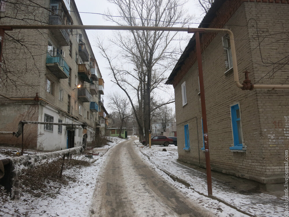 Продолжаем гулять по Кварталам Заводского района. По 1-му Брянскому тупику мы дошли до улицы Хомяковой. Вот так выглядит она с изнанки. А вот так выглядит её "лицо". Массивный трубопровод идёт через весь район и отапливает улицу. Чтобы тепло не пропадало зря мы разогрели бутерброды. Поверхность трубы - огненная. Перекусив, мы отправились вдоль трубопровода. В другую сторону улица выглядит так. Эти дома были построены в 1955 году. Застройка тут плотнее, чем в Крекинге, который застраивался в довоенные годы. Бутылок из под пива тут столько много, что ими выложены все встретившиеся нам "клумбы" во дворах. Через дорогу виднеется комплекс из трёх корпусов. Да, это гигантский детский сад №176 с огромной территорией! Пересечение с улицей Южно-Зеленой. С неё на улицу Хомяковой сворачивают автобусы 90-го маршрута. С этого места дорога становится двухсторонней - по обе стороны от трубопровода. В доме справа расположена государственная стоматологическая поликлиника. Ещё одно пересечение - вниз от