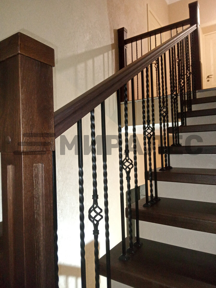 Отделка П-образной бетонной лестницы c кованой балюстрадой