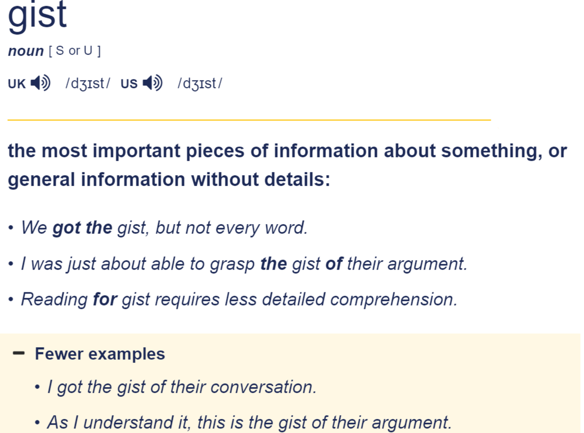 English. Как по-английски "I couldn't ... some of the words ... , but I got ... ... " (некоторых слов я не расслышал, но понял общий смысл)