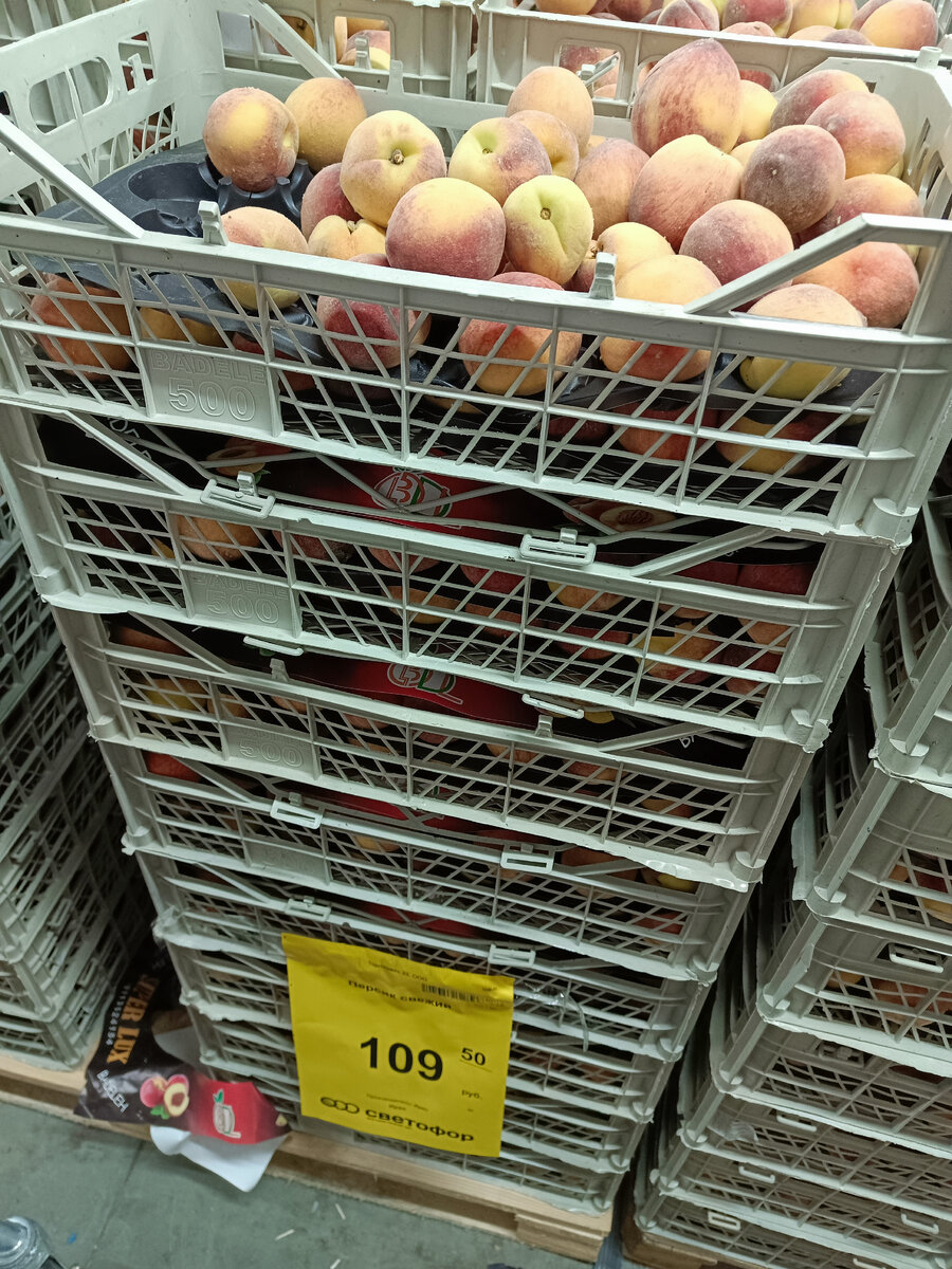 Цены на заморозку, овощи и фрукты в "Светофоре" постоянно падают и конкуренты начинают нервничать, предлагая разные акции. Ну а в хозяйственном ряду магазина вновь новинки и все очень интересные. И в этом обзоре, делюсь с вами увиденным в "Светофоре" города Абинск. Свежие персики из Турции, немного твёрдые, но сладкие. Цена 109 рублей за 1 кг. Крупные розовые помидоры от местных фермеров. Цена 84 руля за 1 кг, в магазинах такие продают по 150 рублей. Свежие тепличные огурцы для салатов или засолки с зеленью. Цена 43 рубля за 1 кг. Ананасы из Коста-Рики, мягкие и уже созревшие. Цена 124 рубля за 1 кг. Подсолнечное рафинированное масло "Удачная цена", в бутылке 900 мл. Цена 72 рубля. Хорошие крупные яйца категории С 0. Цена 170 рублей за 30 штук. Мороженая свиная голяшка, которая очень вкусно получается в духовке. Цена 118 рублей за 1 кг. Питьевой йогурт Epos с кусочками персика, в бутылке 250 грамм. Цена 35 рублей. Домашние котлеты от местных производителей из комбинированного фарша. Це