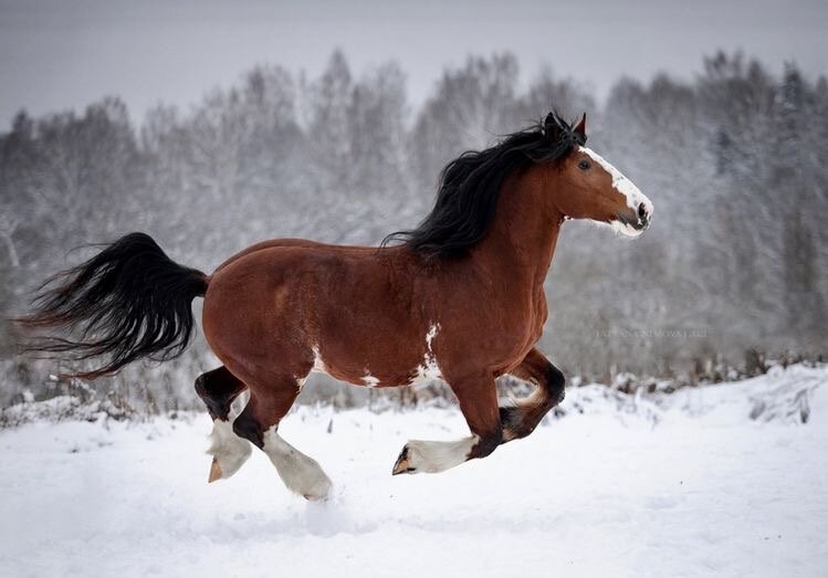 История Породы В 2021 году этой легендарной породе лошадей исполнилось 75 лет. Высокие, мощные, а по характеру спокойные и дружелюбные, эта порода выводилась в период, когда стране так важно было поднять сельское хозяйство после Великой Отечественной Войны. Занимались селекцией породы еще с конца 19 века, появились владимирские тяжеловозы в 30-х годах уже 20-го, а официально о создании породы объявили в 1946 году. Это не скаковые лошади, хотя могут ходить под седлом, это труженики, способные вспахать поле или перевести большой груз. На своей родине во Владимирской и Ивановской областях их использовали в тройке, это поистине величественное зрелище! В 70-80-е годы прошлого столетия владимирские тройки были абсолютными чемпионами ежегодных соревнований фестиваля «Русская зима» в Москве. Внешний вид По своему внешнему виду владимирский тяжеловоз значительно отличается от других. И самая главная характеристика животного – это его размер. Так, масса лошади может колебаться в диапазоне от 100