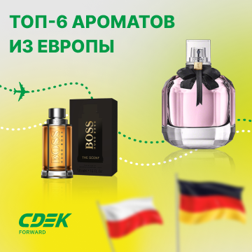 Если вы хотите купить лучшие ароматы, их нужно искать в магазинах Европы. Там большой выбор парфюма известных брендов по доступным ценам. Из России выгодно заказывать в польских и немецких интернет-магазинах. CDEK Forward доставит ваши покупки в любой регион России.