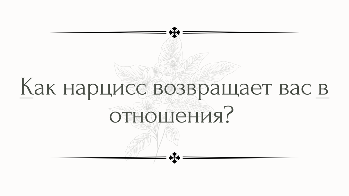Главное, что нужно помнить нарцисс может использовать любые доступные манипуляции и других людей, если решил что хочет втянуть вас обратно в отношения.