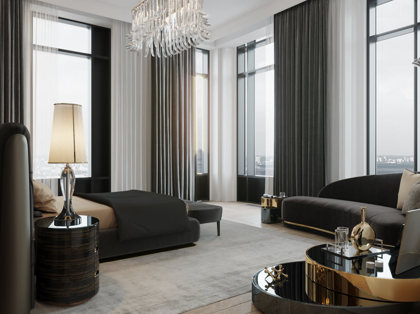 Свободная планировка огромного пространства пентхаусов позволяет владельцу конструировать жилое пространство в соответствии с собственными вкусовыми предпочтениями. В пентхаус можно интегрировать кухню, столовую, гостиную, библиотеку и кабинет, а также камерный концертный зал. Для демонстрации потенциала этих просторных объектов дизайнеры застройщика визуализировали интерьер, который мог бы здесь появиться.