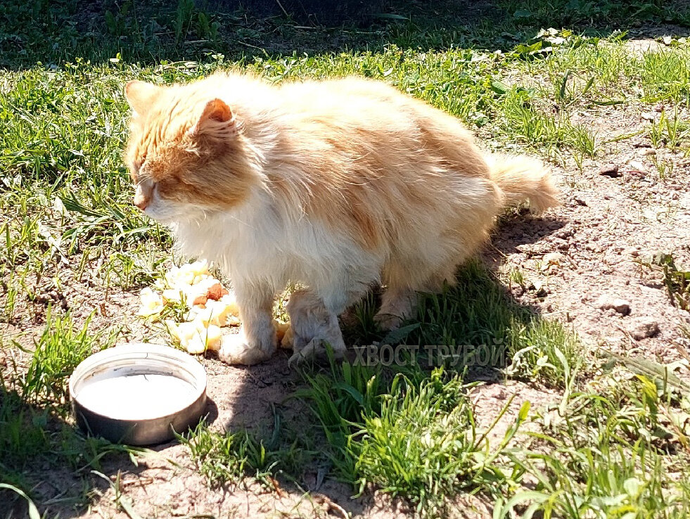 В поселке к частному дому приковылял рыжий пушистый котейка. Парень был настолько невероятно общительным, насколько и невероятно худым и изможденным. Он радостно подставлял бока для почесушек и показывал свою странную лапку, жаловался на кошачьем языке на свою судьбу, как будто рассказать пытался, как он жил, что с ним приключилось. Котик был истощен и изможден. Кисть на передней лапке болталась туда-сюда, казалось, еще чуть чуть, и она оторвется. Что случилось с котиком, можно лишь только догадываться. Предположительно, он попал в капкан, судя по виду лапы, давно. Ехать из Курска до Коренево почти 2 часа туда и столько же обратно. Выехать в тот же день, как получили сообщение о несчастном котике, мы не могли. Попросили придержать его и покормить, боялись, что бедняга пойдет скитаться дальше. Но котик со двора, в котором его покормили и выслушали его жалобы, уходить не собирался. Он скромно обосновался в огороде, во двор заходить боялся, оттуда его звонким лаем прогоняла собака. А в