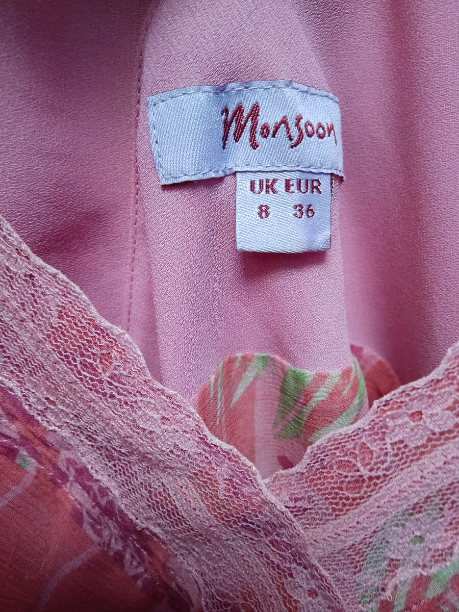 Доброго времени суток! Я уже который раз убеждаюсь- подвес в Меге не только на 40%. Ещё раз убедилась в этом. была в той части города по работе, и тут как раз обеденный перерыв- забежала на 20 минут буквально, быстренько прошерстила блузки-топы на предмет шёлка. Из вот этой статьи остался только топ без рукавов. Остальное размели. Чего сегодня нашла. Фото не в очень удобном формате, на со смартфона галерею нельзя создавать, а я "по горячим следам" пишу обзор, допивая обеденный кофе перед тем как опять погрузиться в работу. Несколько "муссонов" Топ в стиле бохо. Как всегда возник вопрос-зачем шёлковой вещи полиэстерная подкладка?! Не купила-не мой фасон как-то... Не поняла, но не понравилось, а можно было купить за 38 р Ещё один Monsoon Не шёлк, но раз взяла уже... Не купила. Жууууткий запах из далёкого прошлого, когда секонд-хенд пах вот так. Туника. Шёлк 500 р на завозе. Не купила. Нежнейшая (на первый взгляд) блузка Цену не сфоткала, но 500 р на заводе. Не купила- очень колючи