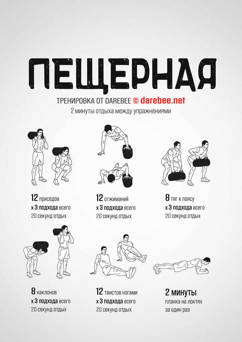 Новый релиз — Пещерная тренировка Эта тренировка напоминает о том, что вам не нужно быть пещерным человеком, чтобы извлечь из нее пользу. https://darebee.net/caveman-workout.html ЦЕЛЬ: все тело ТИП: сила СЛОЖНОСТЬ: 3 —подходит для начинающих