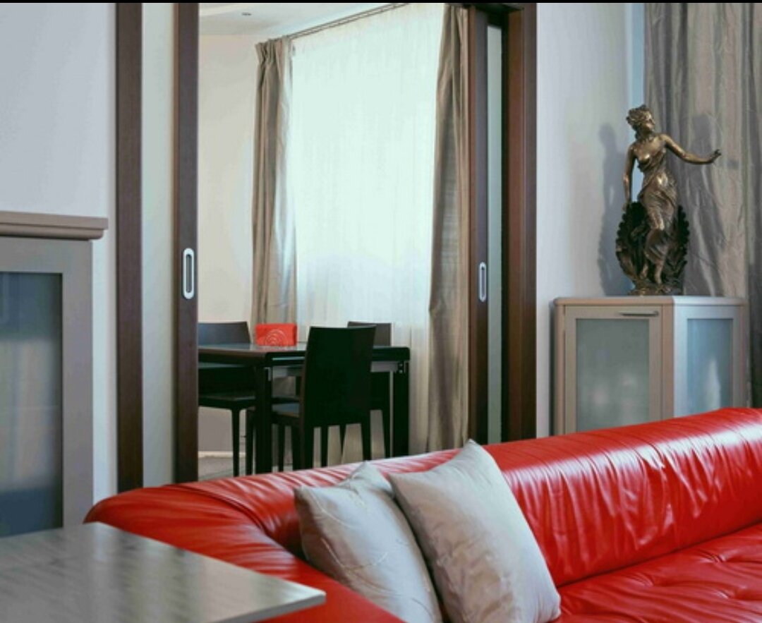 Добрый день всем! Хотела поделиться давней своей публикацией в журнале от 2007 года. Был очень интересный проект для необычной заказчицы. Сделали фото, отправили в редакцию журнала, им понравилось и они прислали своего штатного фотографа для новой съемки. После этого я дала интервью в редакции, познакомилась с директором журнала " Лучшие интерьеры", и она мне преподнесла даже памятный подарок!). Это небольшая квартира на юге Москвы на 19 этаже). Концепцией интерьера стало контрастное сочетание цветов и некоторые детали классического декора, которые были у заказчицы. Нужно было вписать их в современный стиль. Начали с напольного покрытия- паркетной доски цвета венге. Потом увидели роскошный красный кожаный диван и все вдруг сложилось). Нашлись барные стулья и пуф в коже и в том цвете. Особый шарм и легкость добавили светильники фирмы Baga. Мебель в квартире разных производителей - Италия, Германия и столярные изделия на заказ в Москве. Кухня немецкая тоже в отделке шпона венге, а верх
