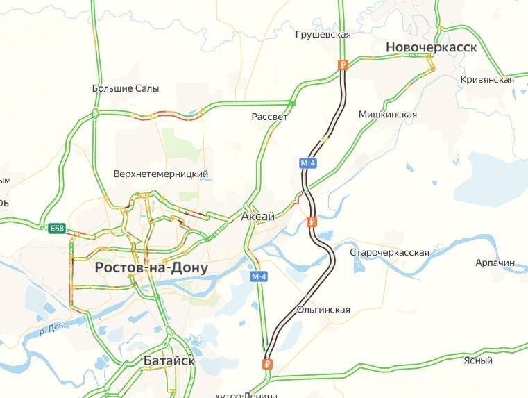 Новая дорога высшей технической категории открыта для проезда автомобилистов с 15 июня. Президент РФ Владимир Путин объявил об открытии платного участка М-4 «Дон» «Обход Аксая» по видеосвязи. Одновременно глава государства объявил об открытии обхода Краснодара. «Эти современные, удобные, скоростные магистрали запущены со значительным опережением графика и теперь будут служить людям», — заявил президент. Строительство обхода в Ростовской области завершили на 18 месяцев раньше срока. Владимир Путин поблагодарил проектировщиков, управленцев, строителей, которые успешно справились с задачей. 15 июня было завершено строительство пятого, заключительного этапа «Обхода Аксая». Открытый президентом участок — это 35,5 км дороги высшей технической категории — IА, к востоку от Ростова и Аксая. Новая дорога без светофоров и пересечений на одном уровне позволит отпускникам быстрее добираться до черноморского побережья, минуя дороги Ростова, а сама городская сеть сможет вздохнуть свободнее, так как т