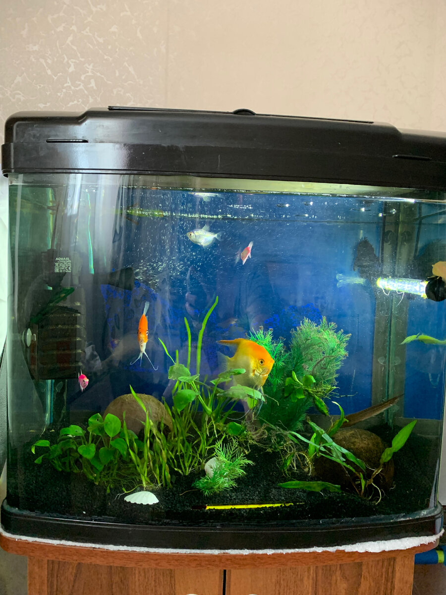 Чтобы среда внутри искусственного водоема была комфортной для всех его обитателей, аквариум на 60 литров потребуется оснастить необходимым оборудованием. В резервуар устанавливают: Выбирая рыбок для аквариума на 60 литров, необходимо изучить особенности их поведения и питания, а также требования к параметрам среды. Для совместного содержания подойдут только виды, в природе обитающие в похожих условиях и обладающие миролюбивым характером. Чтобы узнать максимально возможное количество рыб в аквариуме на 60 литров, необходимо определить объем воды, который остается после заполнения резервуара грунтом, декорациями, оборудованием и растениями. Далее уточняют максимальный размер взрослых особей выбранных видов гидробионтов. После этого выполняют расчет, пользуясь одной из следующих методик: При этом нужно учитывать индивидуальные особенности каждого вида. Так, высокотелым рыбам требуется больший объем, чем рыбкам с продолговатым туловищем. Агрессивным и территориальным видам нужно больше про