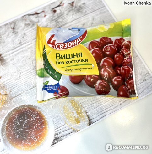Если вишневая косточка попадет в желудок, то в нем вырастет дерево. Вы что, в детстве не слышали? Всем большой привет! Вишня - одна из моих любимейших ягод - яркая, сочная, с характерной кислинкой во вкусе. Готова употреблять ее во всех видах и блюдах - в свежем - готовить морсы, варенье, компоты, в замороженном - добавлять в мороженое, выпечку, да и просто лакомиться. Мне очень нравится вкус именно размороженной ягоды - в ней присутствует характерная вишневая кислинка, и в тоже время нет терпкости, как в свежей. Да и за зубки можно не переживать - они нынче дорогие. Самым оптимальным и максимально удобным вариантом считаю Вишню без косточки марки " 4 сезона" Это наша, краснодарская ягода, в составе только вишня и ничего больше. Торговое название: Вишня без косточки, быстрозамороженная Производитель: ТМ "4 сезона" Вес: 300 г Состав: вишня Пищевая ценность на 100 г продукта: белки - 1,0 г, углеводы - 10,0 г, витамин С - 15,6 мг, бета-каротин - 0,1 мг. Энергетическая ценность: 50 Ккал/21