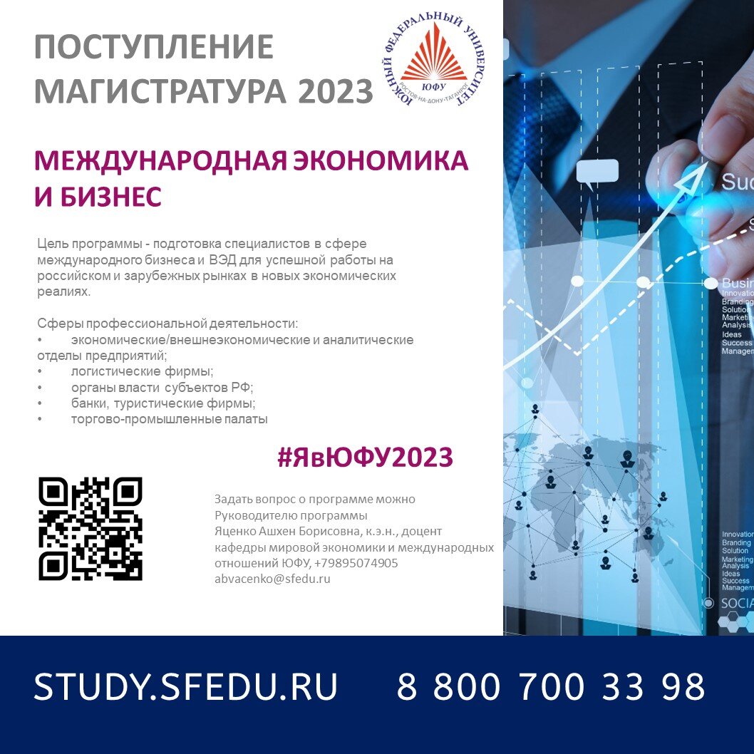 Яценко Ашхен Борисовна руководитель программы, к.э.н., доцент кафедры мировой экономики и международных отношений ЮФУ, +79895074905 abvacenko@sfedu.ru
