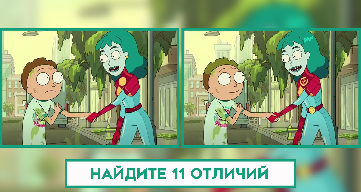 Найди отличия на картинках "Рик и Морти " - веселая развивашка для вашей внимательности.