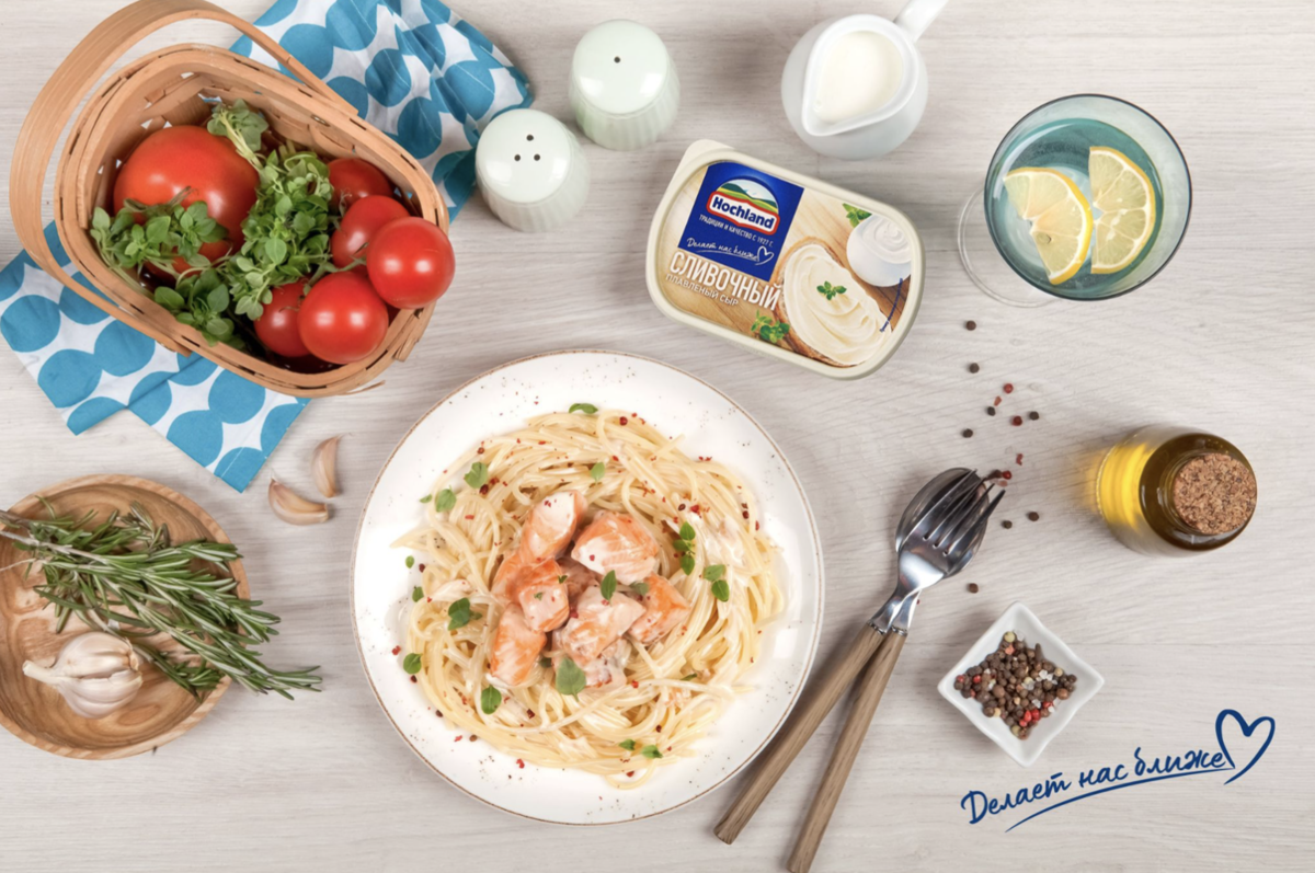 Без сомнения, это традиционное итальянское блюдо порадует и семью, и гостей. Нам приятно позаботиться о том, чтобы все были не только сыты, но и почувствовали себя настоящими гурманами! Для приготовления больше всего подходит плавленый сыр Hochland «Сливочный» в ванночке - он органично сочетается со сливками, образуя однородный соус и придавая блюду такой нежный сливочно-сырный вкус, что лучше невозможно и придумать! Ингредиенты: Приготовление: Вскипятите воду в кастрюле, посолите. Отварите пасту согласно инструкции на упаковке до состояния «аль денте». Пока варится паста, нарежьте филе лосося небольшими кусочками. Разогрейте сковороду с 1 ст. л. оливкового масла и обжарьте рыбу до готовности, 2 мин. Снимите с огня. Сливки налейте в сотейник, добавьте плавленый сыр и, помешивая, доведите до кипения, посолите и поперчите. Дождитесь, пока сыр полностью растворится в сливках, положите рыбу и аккуратно перемешайте. Пасту откиньте на дуршлаг, выложите на блюдо и перемешайте с соусом. Подава