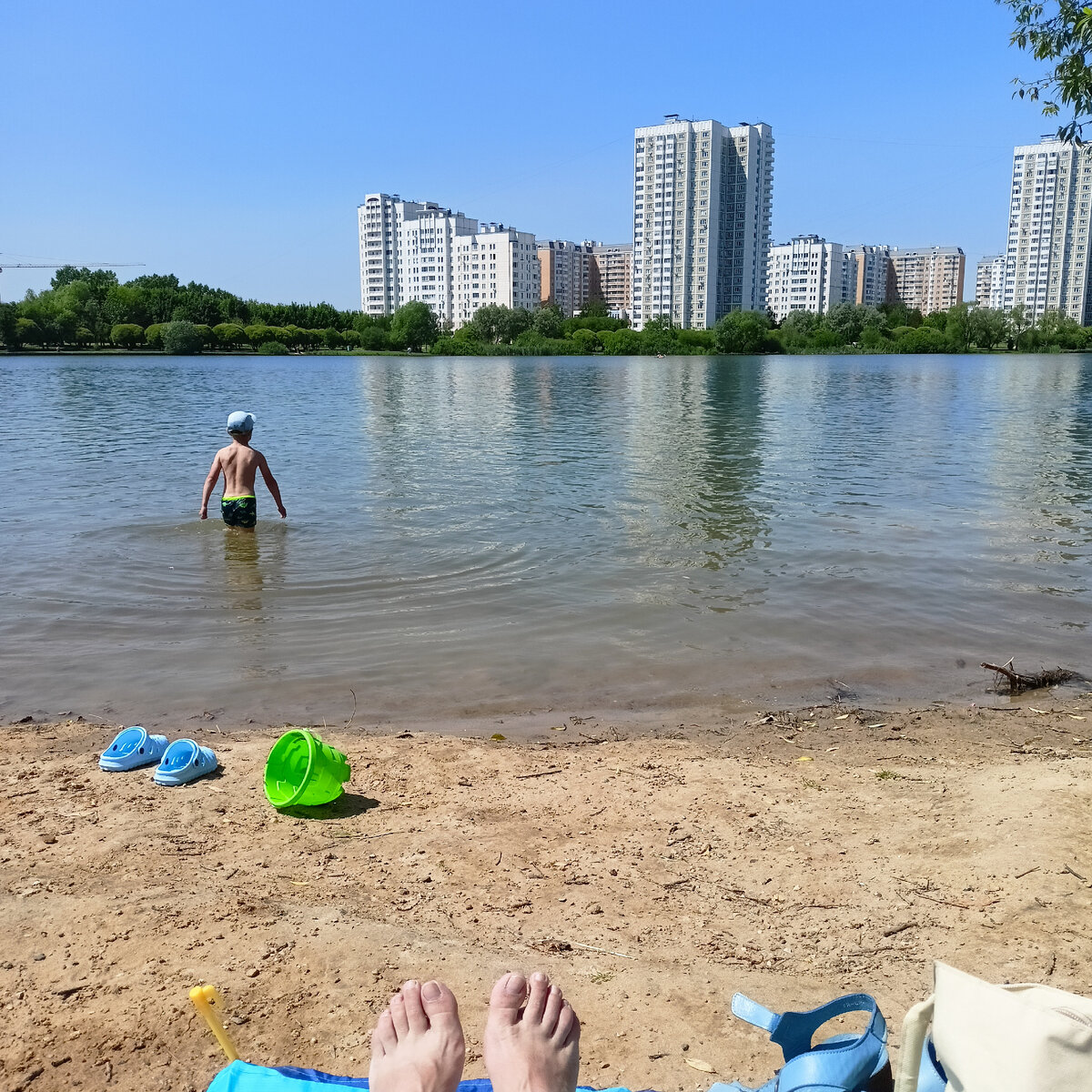С 15 июня в Москве обнаружилась пара жарких денёчков. И вместо того чтобы медленно поджариваться на скамейке в парке, я решила съездить на пляж. Благо он недалеко, менее 10 минут на машине. Вода , конечно, леденящая!!! Но я - таки заплыла ! Бодренько вернулась назад .... И сразу греться на солнышке))) Пару минут дзена словили мы с сыном, пока на берег не пришла компания молодёжи... Сейчас новая мода - девушки купаются в нижнем белье или в бюстгальтере и шортах. Радостные визги девчат немного подпортили отдых, но и народу подвалило как-то много сразу... Мы еще повалялись на солнышке и покатили домой! С открытием купального сезона вас! Купаетесь уже?