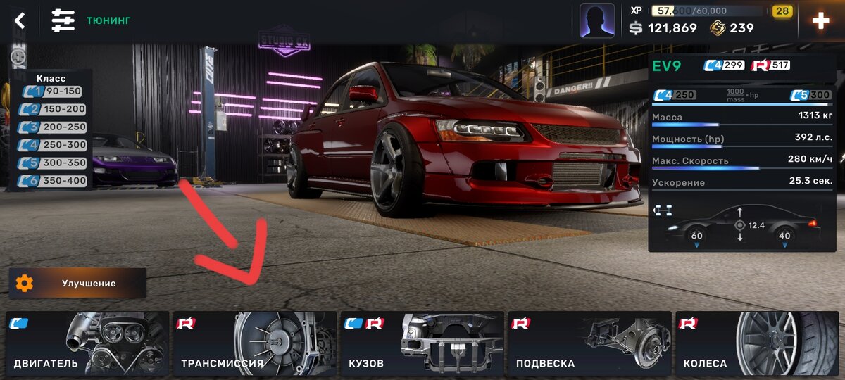 Чтобы получить наиболее эффективный разгон, передачи нужно подводить на момент, когда мощность двигателя почти достигает пиковых значений. На скриншоте это диапазон 4000-4500 об/мин. Последние передачи можно сдвинуть на самый пик, для большей производительности.