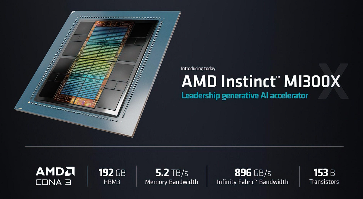 Грядущий серверный графический процессор Instinct MI300X от AMD может претендовать на звание самого энергоемкого чипа после своего выхода, поскольку, по прогнозам, он будет потреблять почти 1 кВт энергии. Ранее самым энергоемким чипом в центрах обработки данных считался графический процессор NVIDIA H100 с номинальным энергопотреблением до 700W. Однако появление Instinct MI300X предвещает новую эру повышенного энергопотребления. В сопроводительной документации к презентации AMD Instinct MI300X говорится, что ускоритель OAM GPU будет потреблять минимум 750W энергии. Для сравнения, предшествующие графические процессоры Instinct MI250X, построенные на архитектуре GPU CDNA2, требовали от 500 до 560W энергии. Таким образом, за одно поколение требования к мощности выросли на 34-50%. Такой прирост неудивителен, учитывая конструкцию чипа и его достойную производительность. GPU обеспечивает восьмикратный прирост в рабочих нагрузках ИИ, работая при этом с пятикратной эффективностью. Ожидаемые хар
