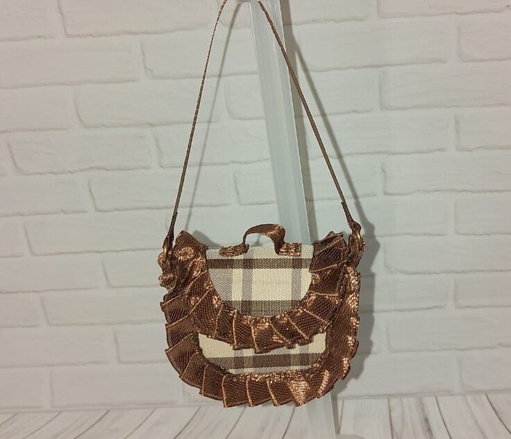 Начало мастер -класса : После того как пришили липучку Приклеиваем лицевую ткань И декорируем . Мне нужны рюшки , для моего образа для куклы , можно и без них , кому как нравится. Включаем фантазию 😜. Потом приклеиваю подкладку к боковой части сумки Теперь сшиваем две эти детали Вот что получилось у меня И приклеиваю атласную ленту внутри вместо подкладки Беру среднюю часть детали сумки и приклеиваю к ней ленты с двух сторон ,чтобы прикрепить боковины На фото появились два квадратика и длинный кусочек ленты , это я буду делать ручку сумки и ремешок на плечо . И так, делаем среднюю часть сумки : пришиваем или приклеиваем квадраты ( я их сложила пополам чтобы можно было вставить потом кольца , на которых будет держаться ремешок сумки) Пришло время пришить ручку к сумке Настал черед середины сумки - я её приклеила . Вот что получилось . Деталей становится всё меньше . Это меня очень радует 😁 Последние штрихи - пришить липучку , подкладку . Теперь вклеиваем