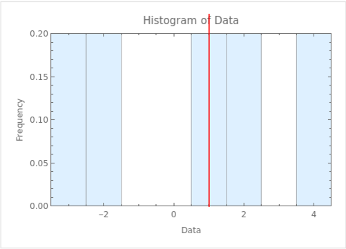 Вот график, который иллюстрирует, как медиана делит данные на две равные части. В нашем примере медиана равна 1, что является центральным значением в упорядоченном наборе данных {-3, -2, 1, 2, 4}. Как вы можете видеть, половина значений в наборе данных меньше медианы (то есть -3 и -2), а другая половина — больше (то есть 2 и 4).