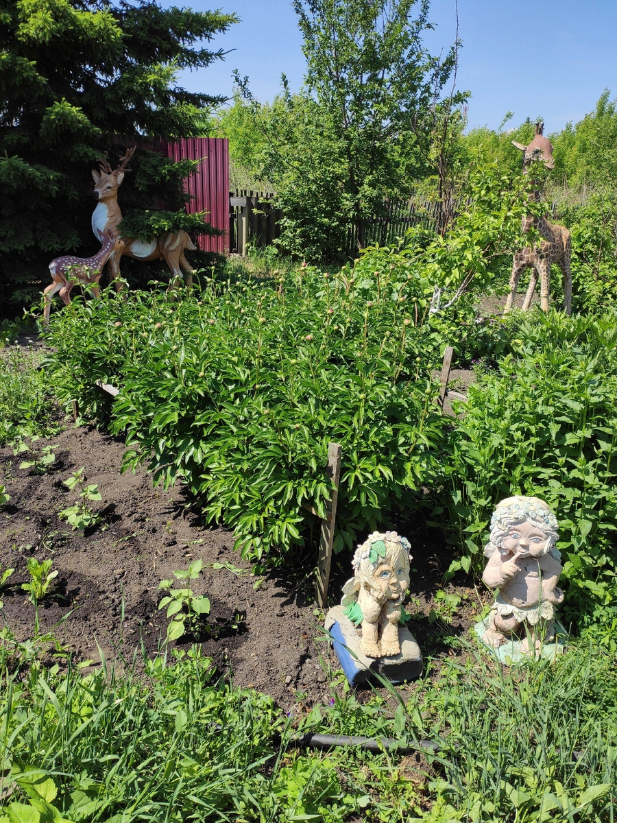 Да, хорошо, вот если бы травы поменьше, да комариков то была бы красота. Всем большой привет!!! А вы как думаете? Хоть и нет у нас дождей всю весну, да и лето что-то дождями не балует, капнул немножко и все, но трава все равно растет как на дрожжах, замучились уже с ней бороться. Но вчера немного уже вздохнула посвободнее, травку более-менее прибрали и даже девчонки мои -кукленки выпросили их пофоткать. Давно уже находятся в деревне, а мне все некогда было ими заниматься, да и фона для фоток подходящего не было, цветочков у нас еще нет. Все жду когда зацветут пионы, у них только еще такие бутончики А пионы , наверное , ждут когда начнутся дожди, чтобы я не увидела эту красоту. В прошлом году все цветение пришлось на дождливый период и даже не пофоткались. Цветочки у нас только во дворе-петуньи и то не мной выращенные, а куплены в питомнике. Цветочки покупала уже цветущими, здесь мне помогали их рассаживать мои верные помощники: и вот они как красиво разрослись: "А почему такой велик